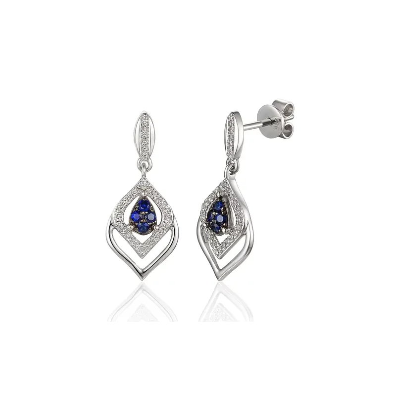 Kolczyki Szafir Diamenty Białe Złoto Sztyft pr 585 ( NA ZAMÓWIENIE )