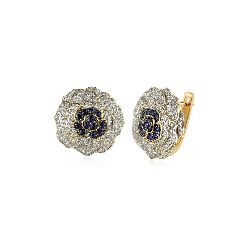 Złote Kolczyki Szafir Diamenty pr 585 Angielskie ( NA ZAMÓWIENIE )