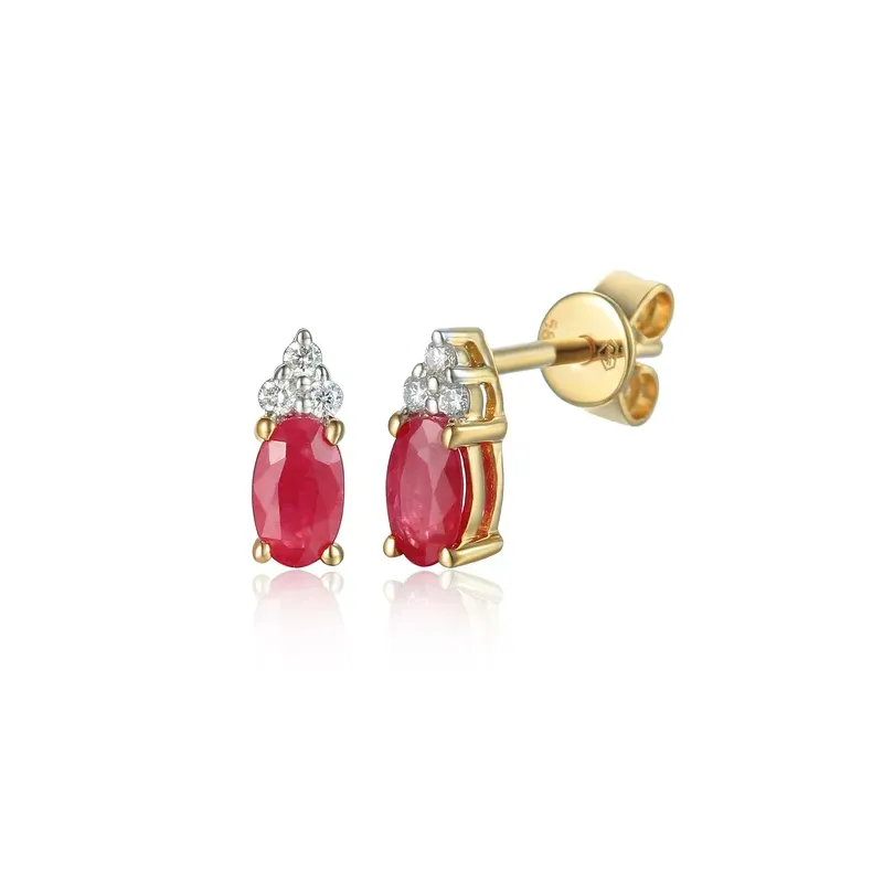 ZŁOTE KOLCZYKI 585 RUBIN DIAMENTY SZTYFT PREZENT ( NA ZAMÓWIENIE )