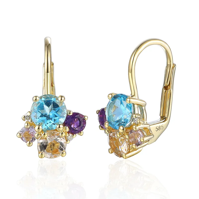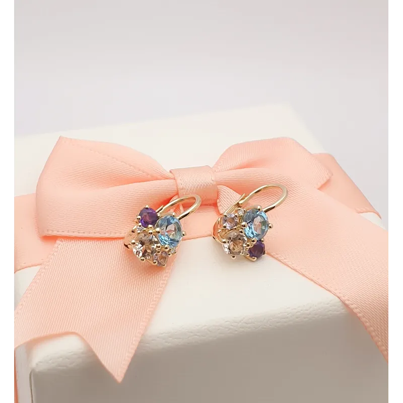 ZŁOTE KOLCZYKI MORGANIT TOPAZ AMETYSTY BRYLANTY