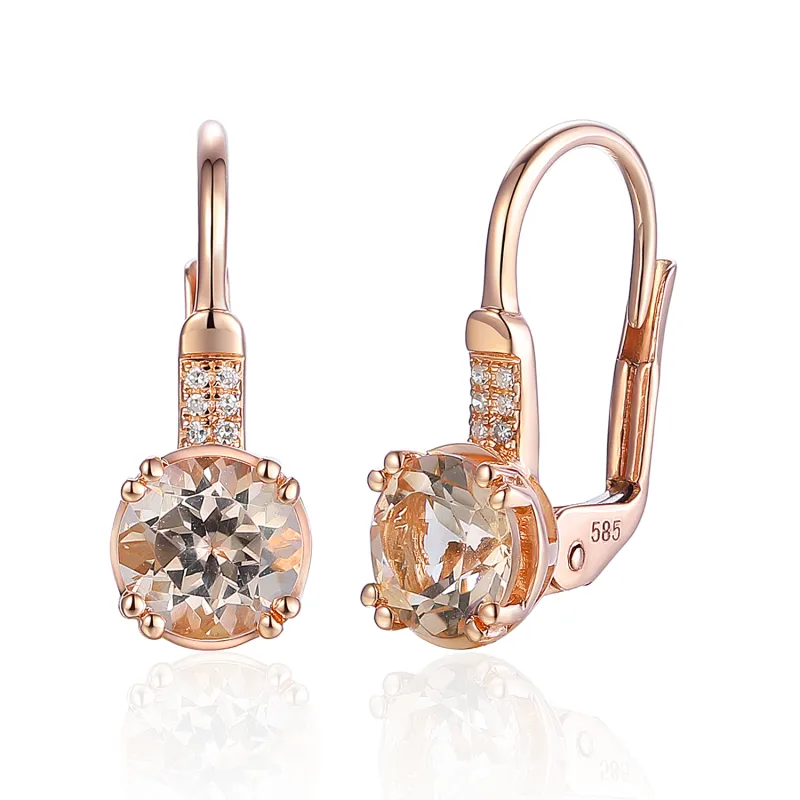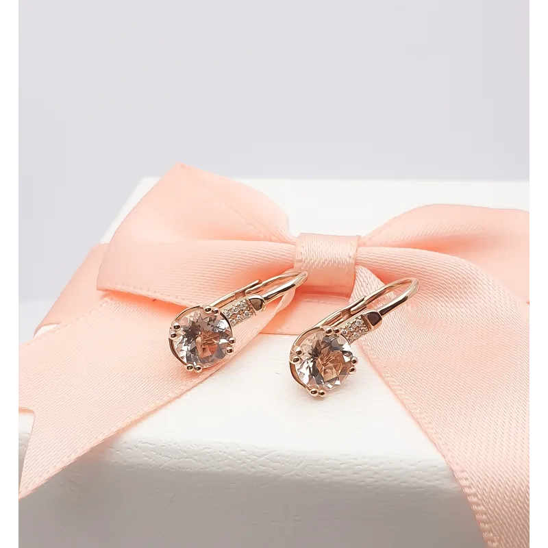 Kolczyki Morganit i Diamenty Patentka Próba 585