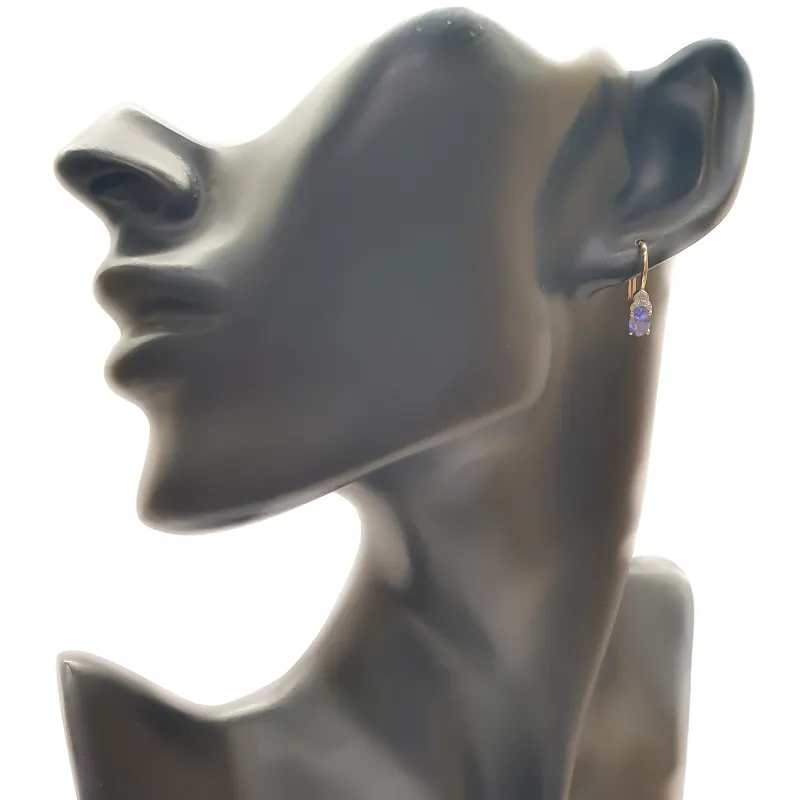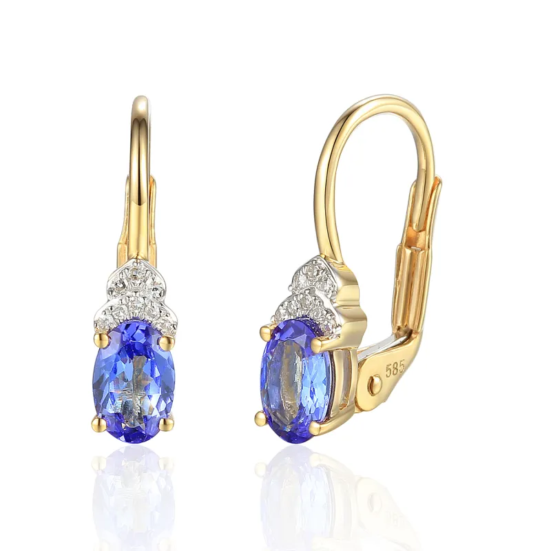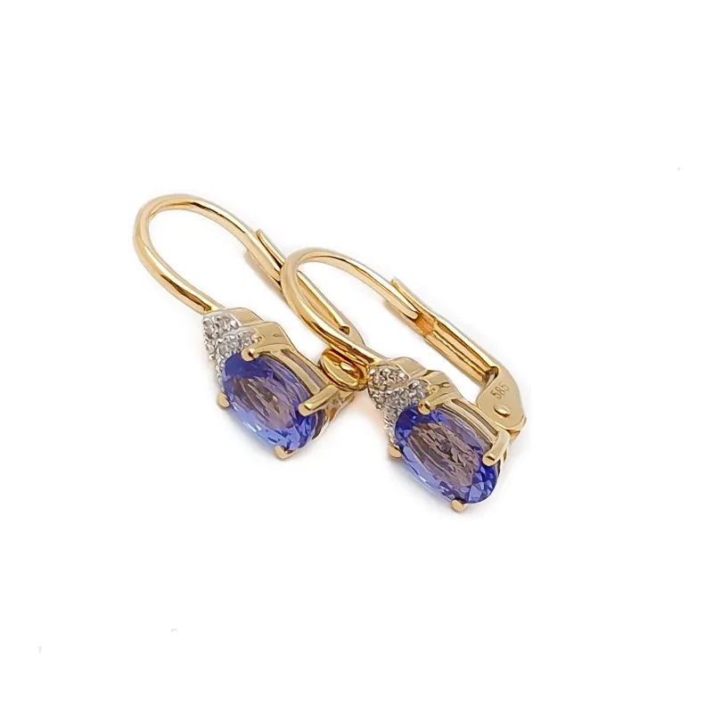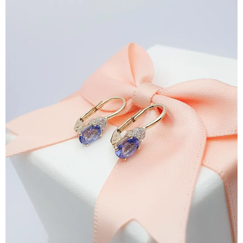 ZŁOTE 585 KOLCZYKI TANZANIT I DIAMENTY NA PREZENT