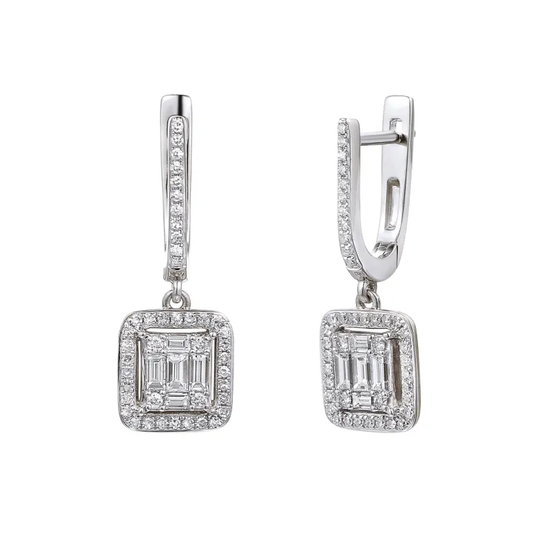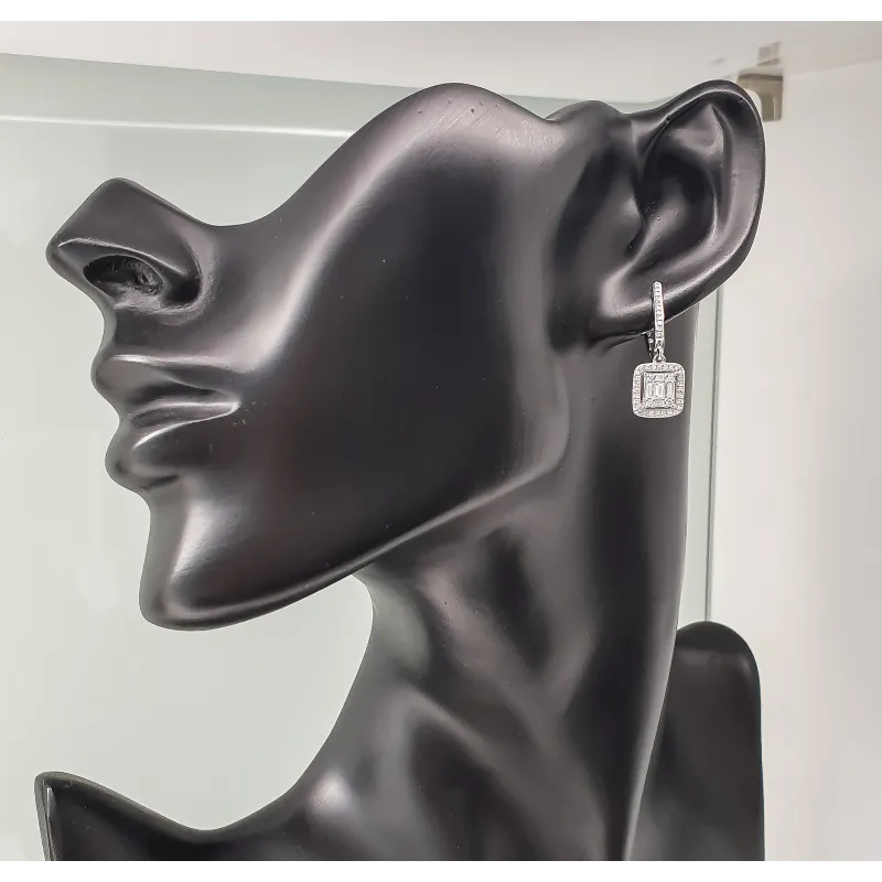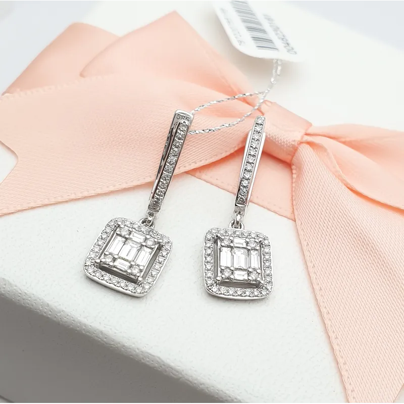 Eleganckie 585 Kolczyki Diamenty Białe Złoto ( NA ZAMÓWIENIE )