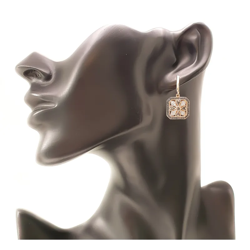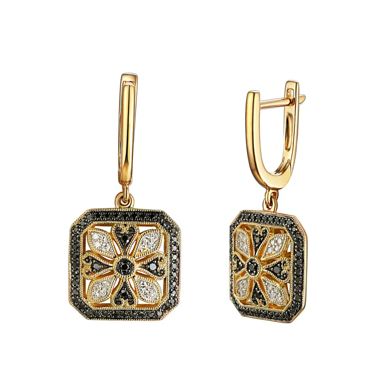 ZŁOTE 14K KOLCZYKI CZARNE BIAŁE DIAMENTY PREZENT