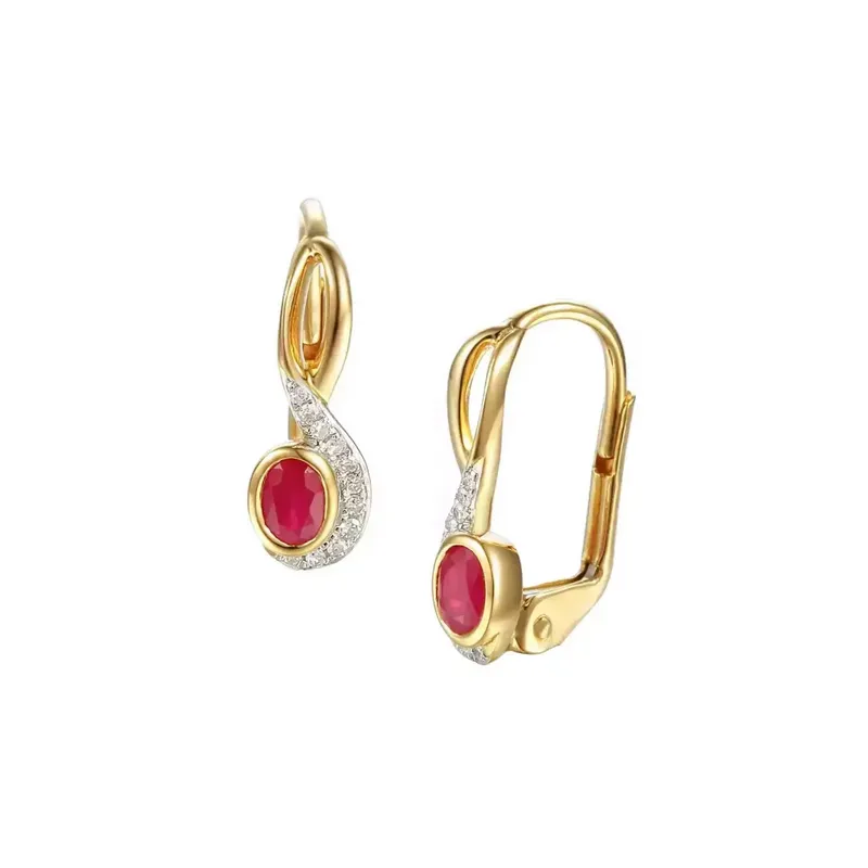 Złote Kolczyki Rubin Diamenty Patentka Próba 585 ( NA ZAMÓWIENIE )