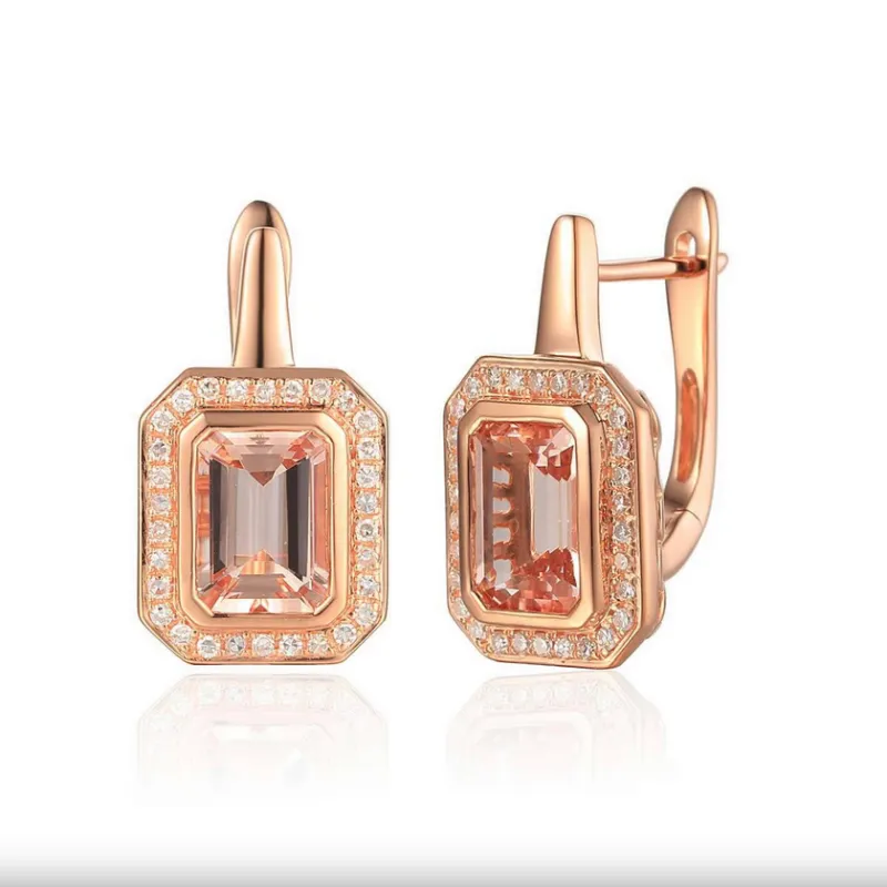 KOLCZYKI MORGANIT DIAMENTY ANGIELSKIE PRÓBA 585 ( NA ZAMÓWIENIE )