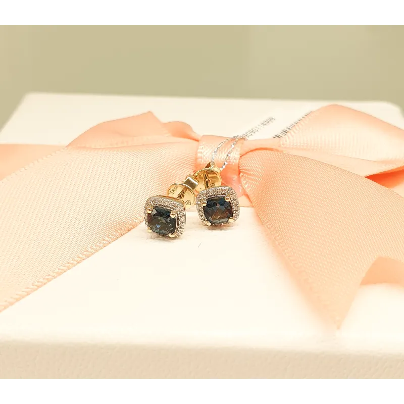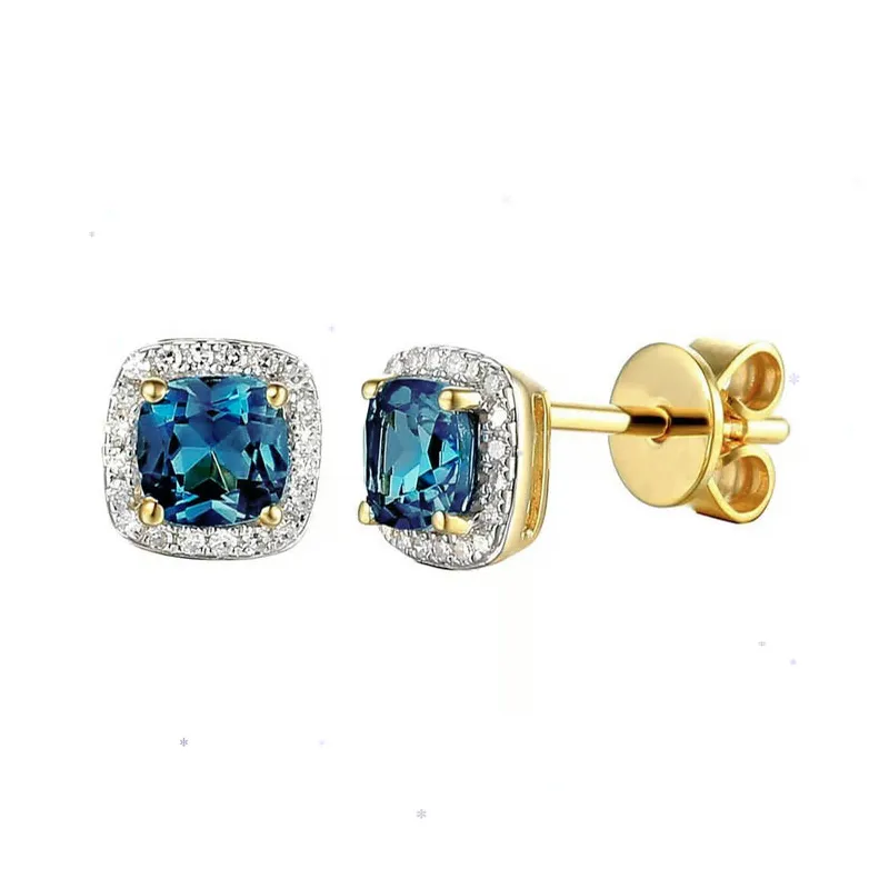 ZŁOTE 585 KOLCZYKI LONDON BLUE TOPAZ I DIAMENTY
