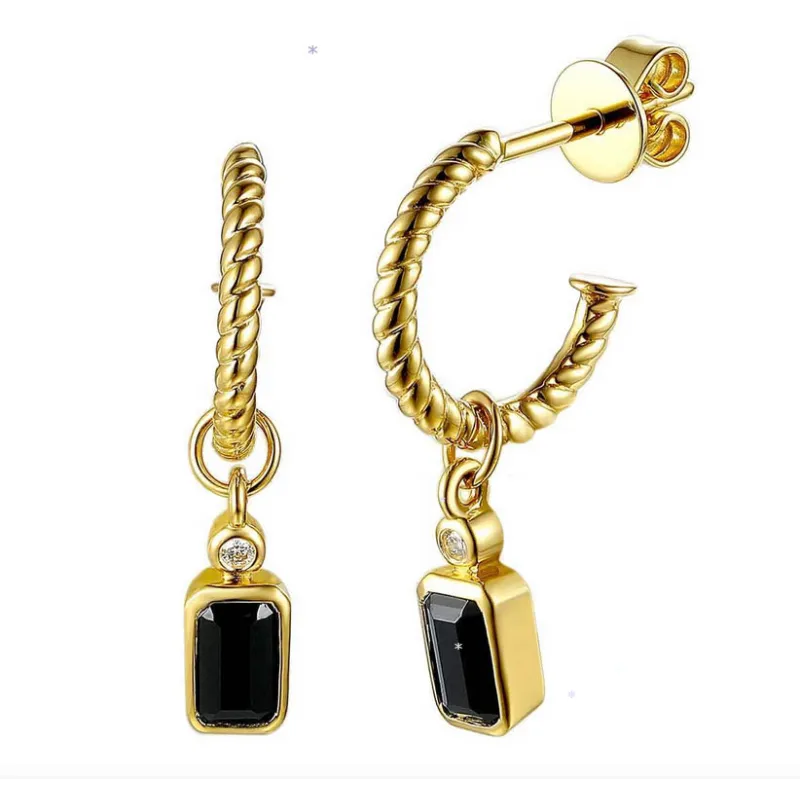 Złote 585 Kolczyki Agat i Diamenty Sztyft