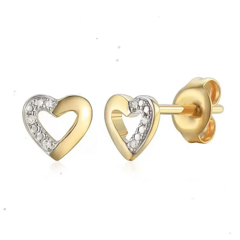 Złote 585 Kolczyki Serduszka z Diamentami Sztyft