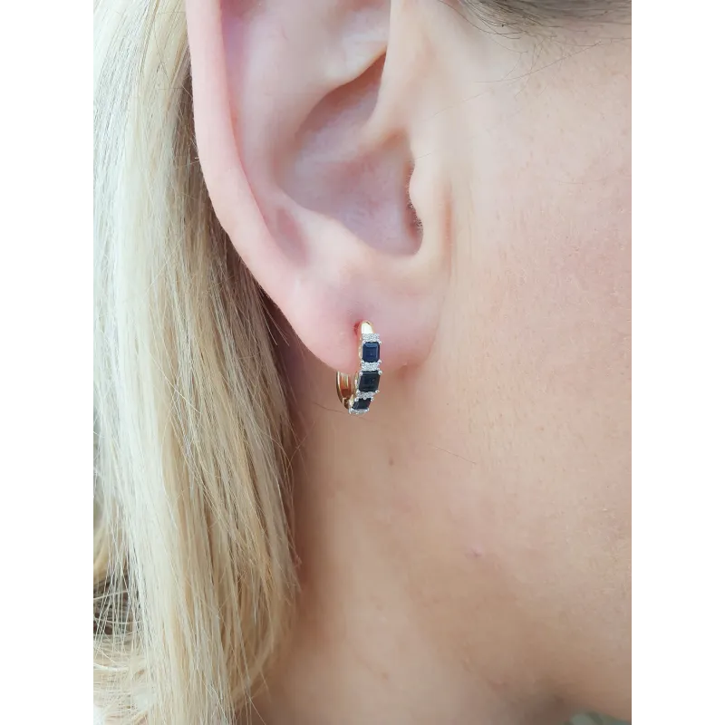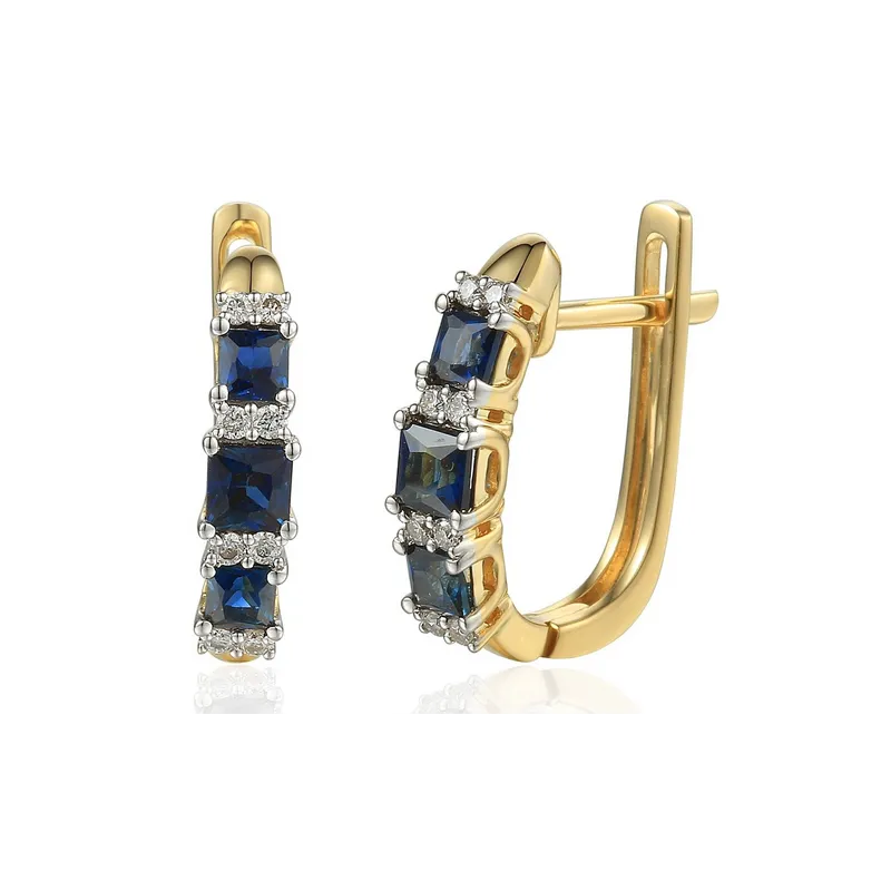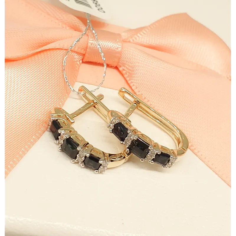 Złote Kolczyki z Szafirami i i Diamentami pr.585