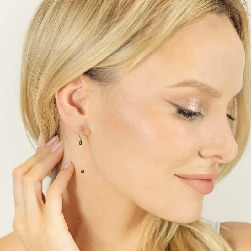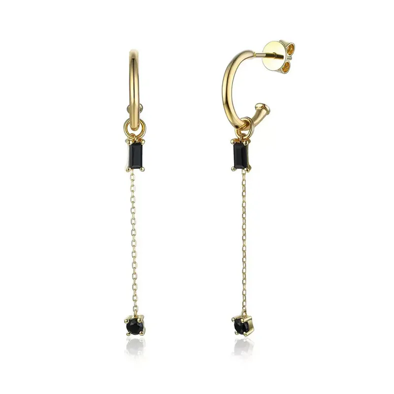 Złote 585 Kolczyki Czarny Agat Wiszące Sztyft