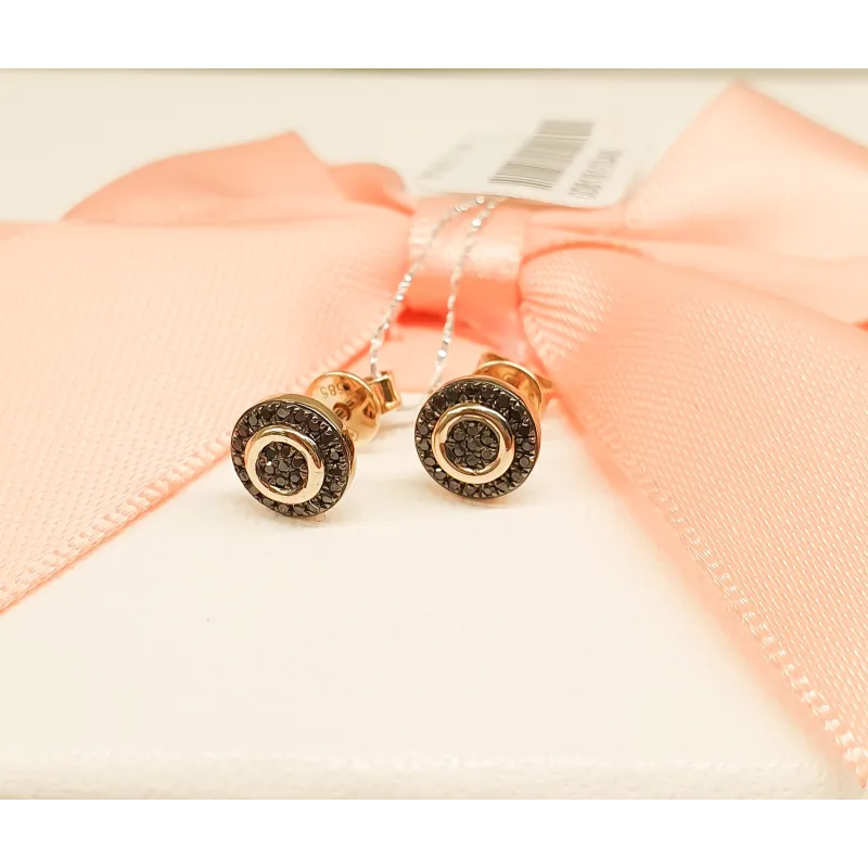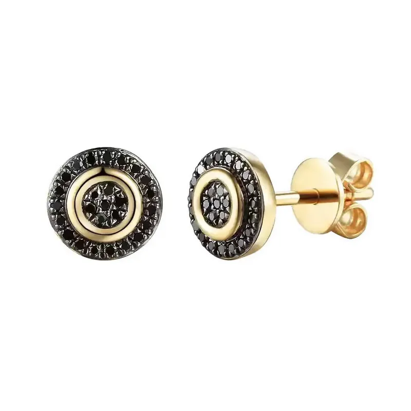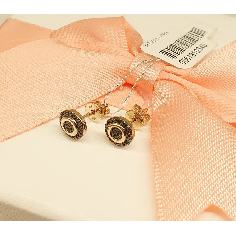 Złote Kolczyki Czarne Diamenty Sztyft pr 585