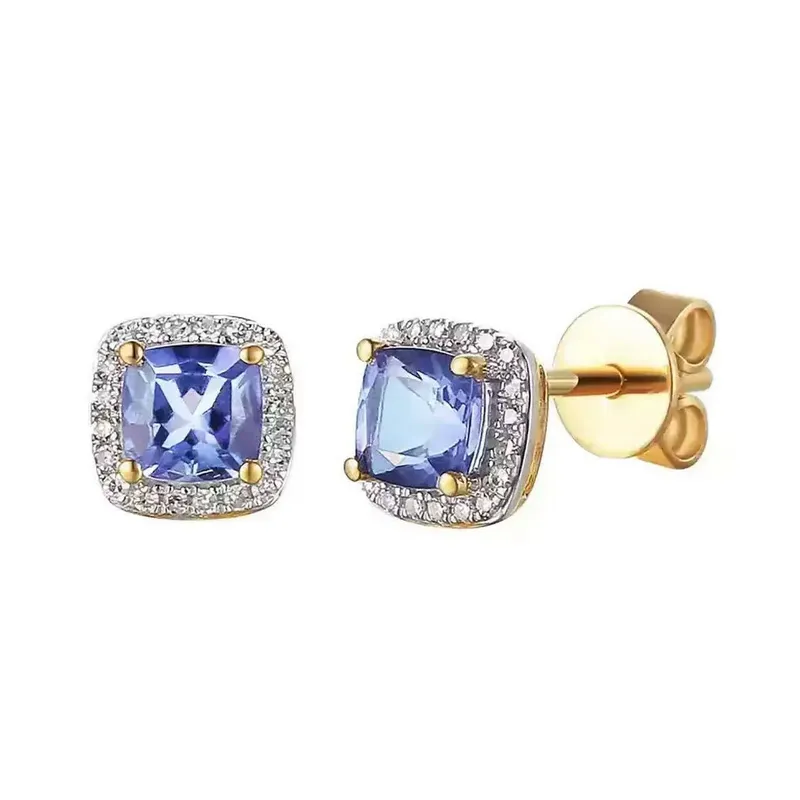 KOLCZYKI TANZANIT DIAMENTY ZŁOTO pr 585