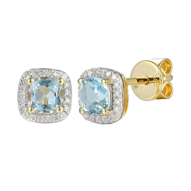 KOLCZYKI AKWAMARYN DIAMENTY ZŁOTO pr 585