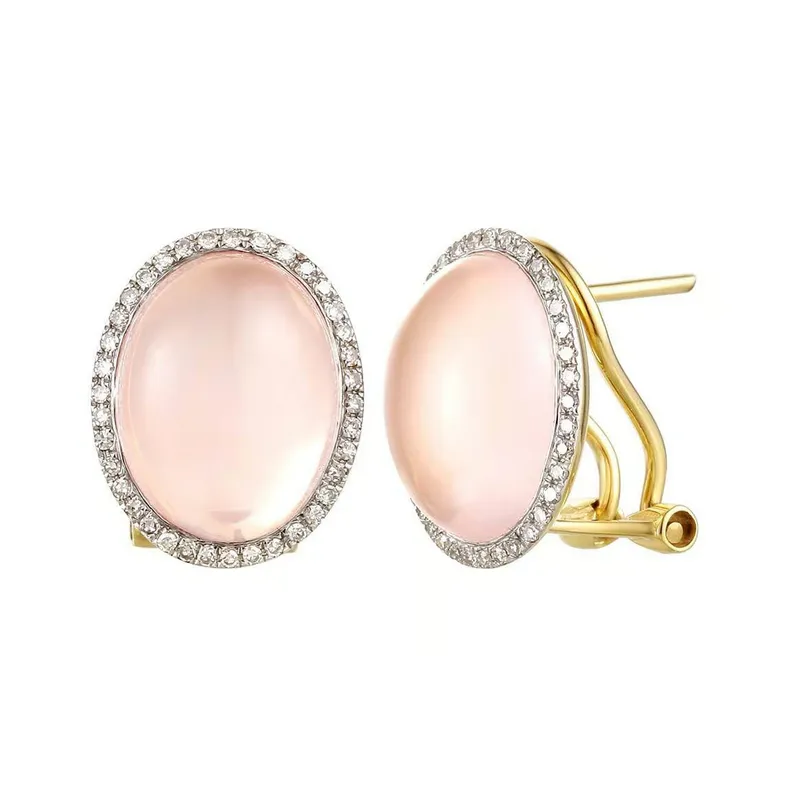 ZŁOTE KOLCZYKI Z RÓŻOWYM KWARCEM I DIAMENTAMI