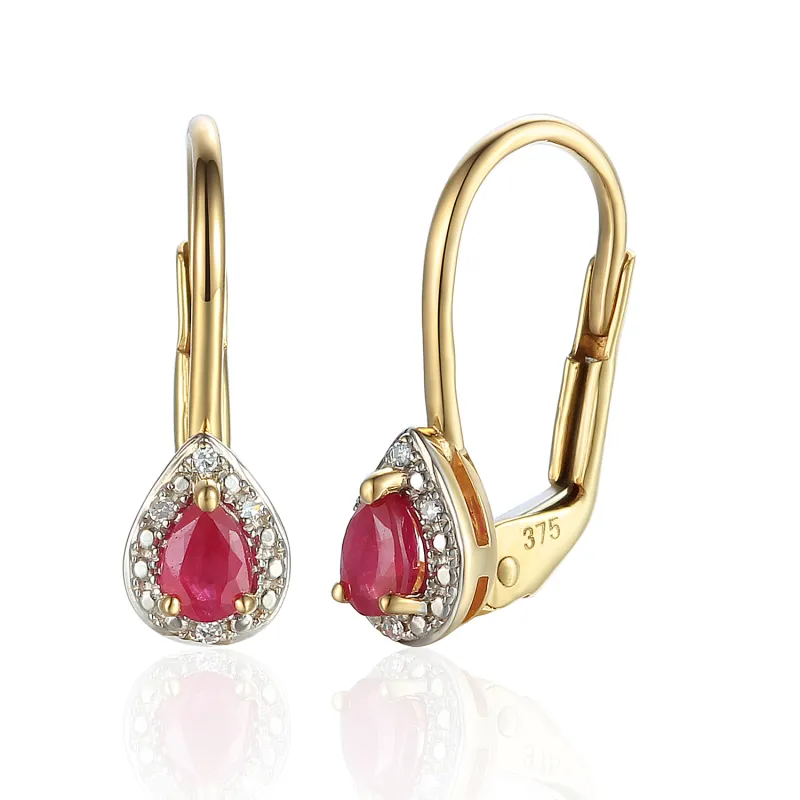Złote Kolczyki Kwadrat Czerwone i Białe Cyrkonie Angielskie Zapięcie Próba Złota 585