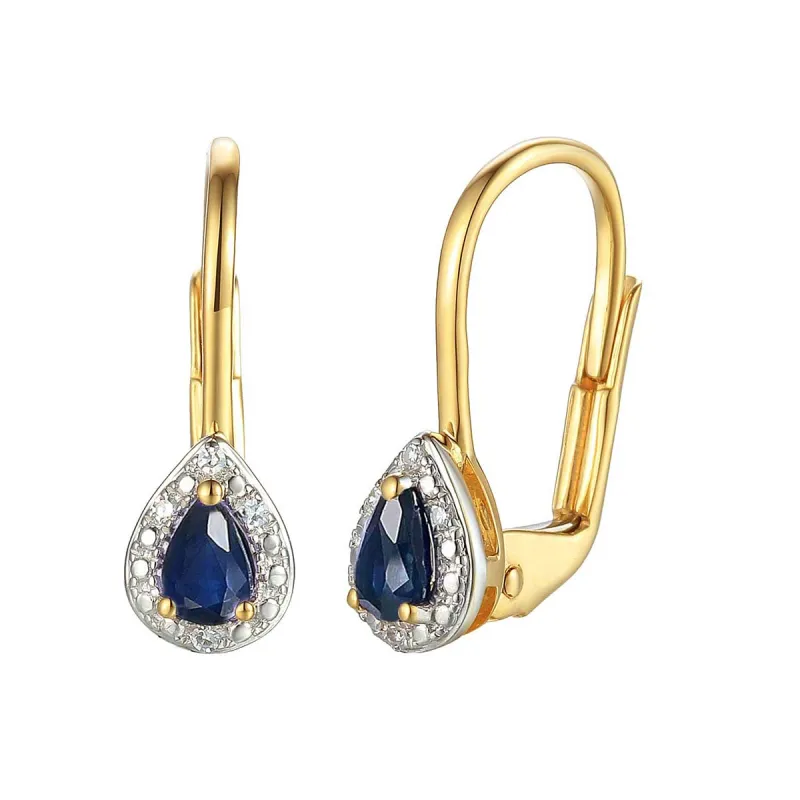Złote Kolczyki Łezki Szafiry Diamenty 585 Patentka (NA ZAMÓWIENIE)