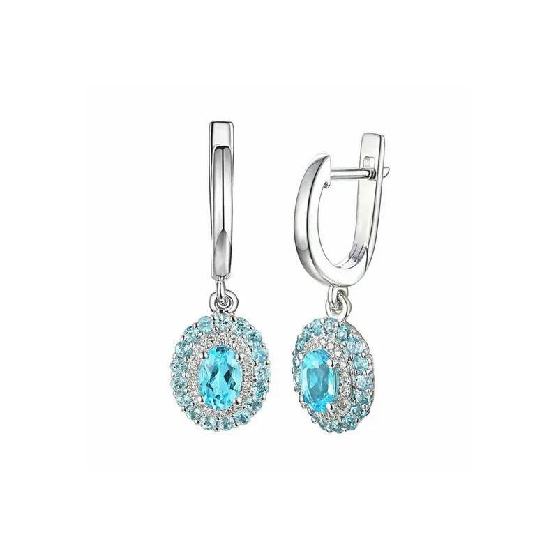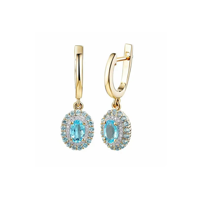 Złote Kolczyki 585 Topaz Diamenty w Białym Złocie ( NA ZAMÓWIENIE )