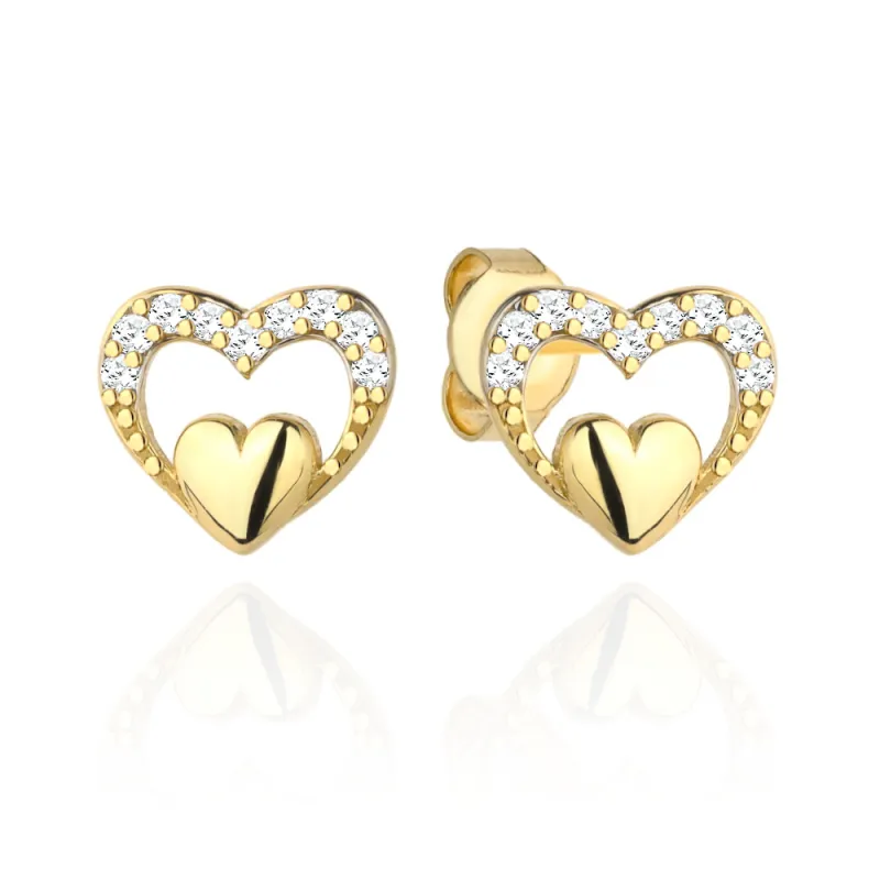 Złote Kolczyki 585 Serduszko w Sercu z Cyrkonii Wspaniały
