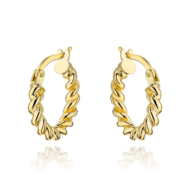 Złote 585 Kolczyki Koła Plecione na