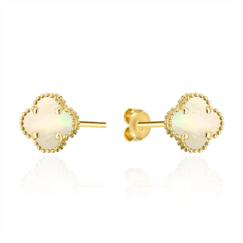 Złote Kolczyki 585 Duże Modne Koniczynki z Masą