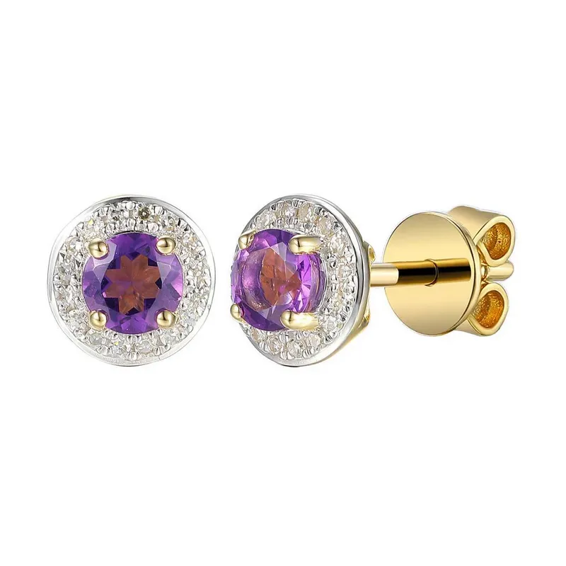 ZŁOTE KOLCZYKI 585 AMETYST DIAMENTY SZTYFT