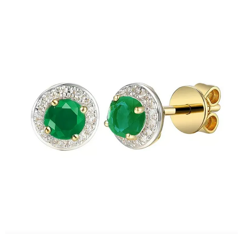 KOLCZYKI 585 SZMARAGD DIAMENTY ZŁOTO SZTYFT ( NA ZAMÓWIENIE )