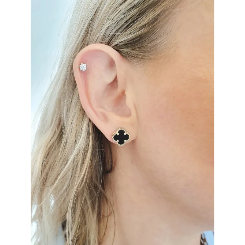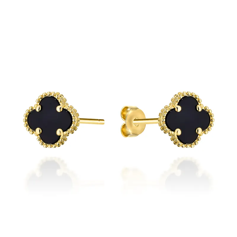 Złote Kolczyki 585 Duże Koniczynki z Onyksem 11mm Super Modny