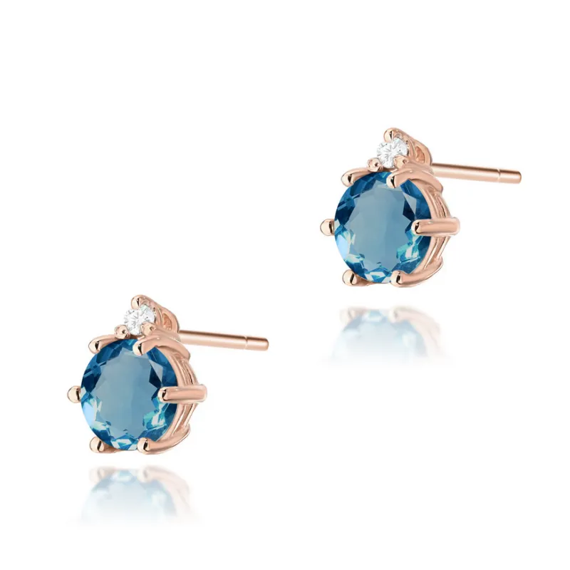 Złote 585 Kolczyki Topaz London Blue i Diamenty