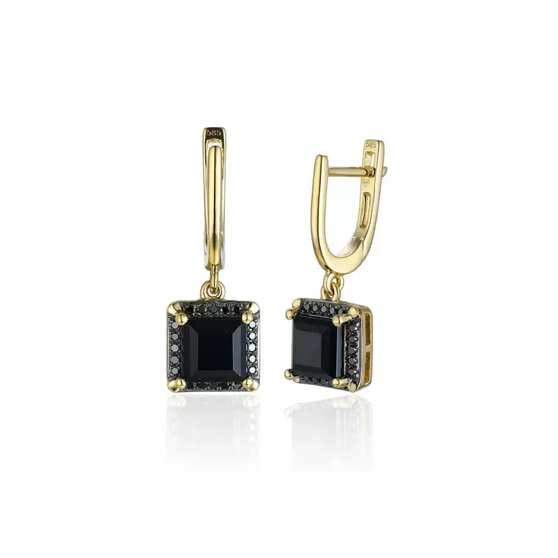 Złote 585 Kolczyki Agat Czarne Diamenty Angielskie