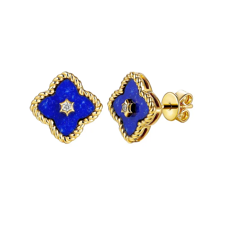 ZŁOTE 585 KOLCZYKI LAPIS LAZULI I DIAMENTY KONICZYNKI