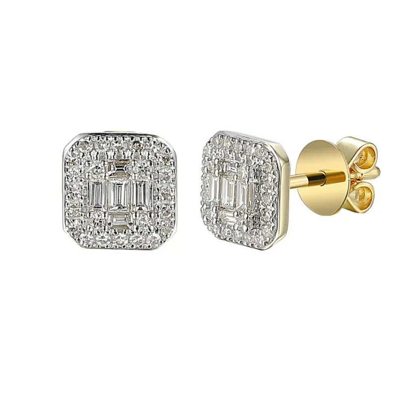 Złote 585 Kolczyki z Diamentami Bagietkowe Sztyft
