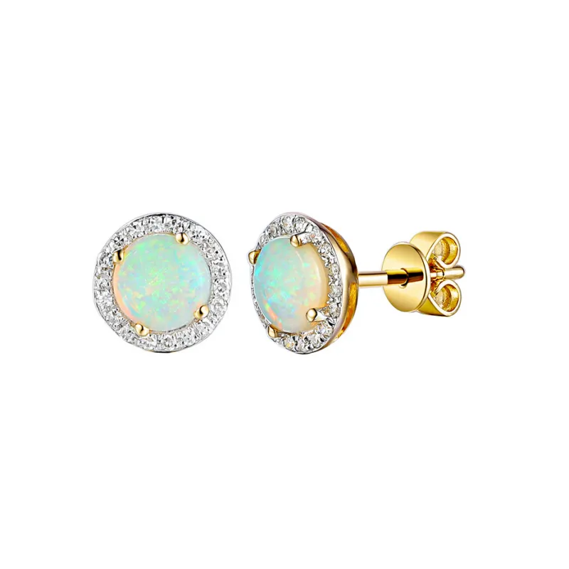 ZŁOTE KOLCZYKI OPALE I DIAMENTY PRÓBA 585