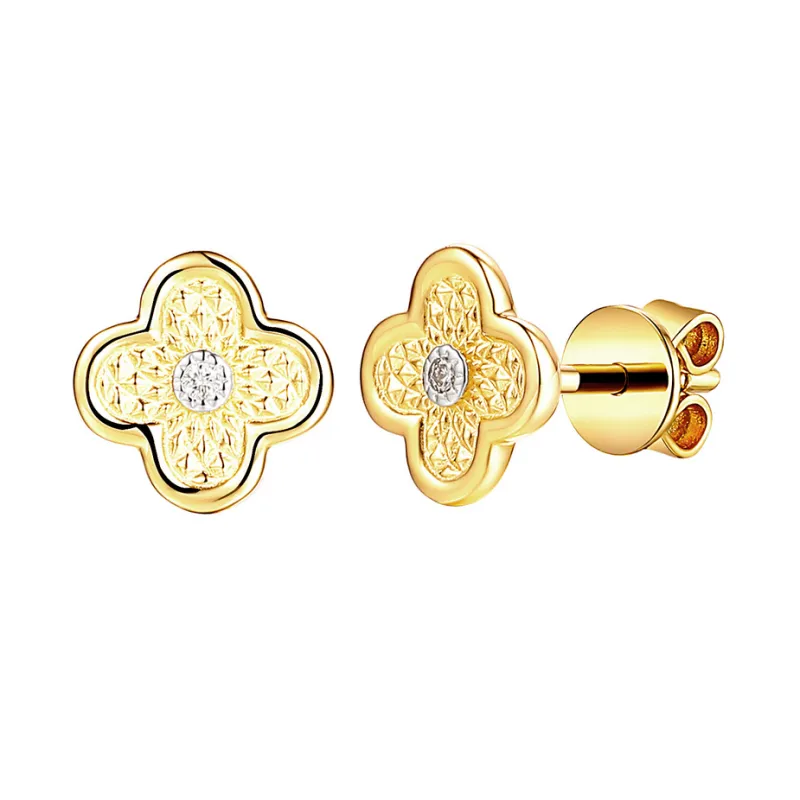 Złote Kolczyki Koniczynki z Diamentami