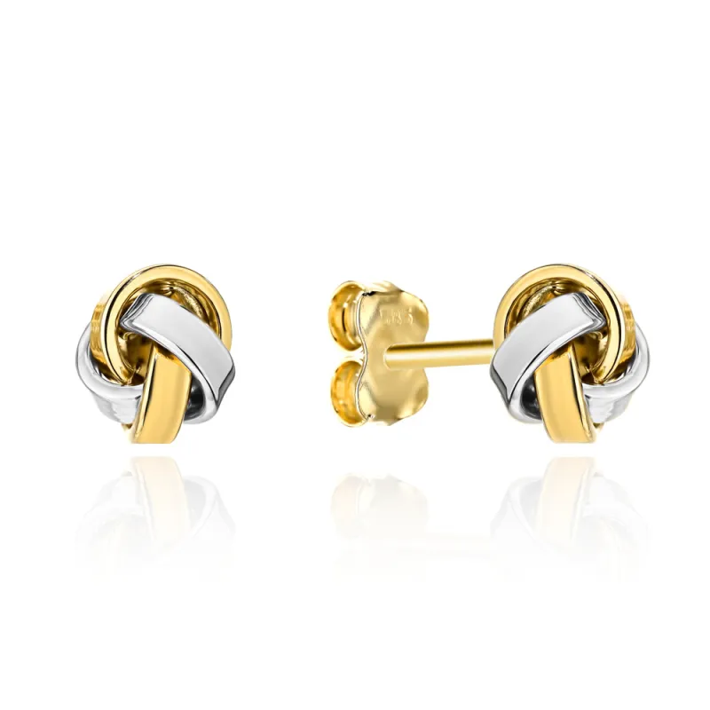 Złote Kolczyki 585 Supełki Żółto-Białe Złoto Modny