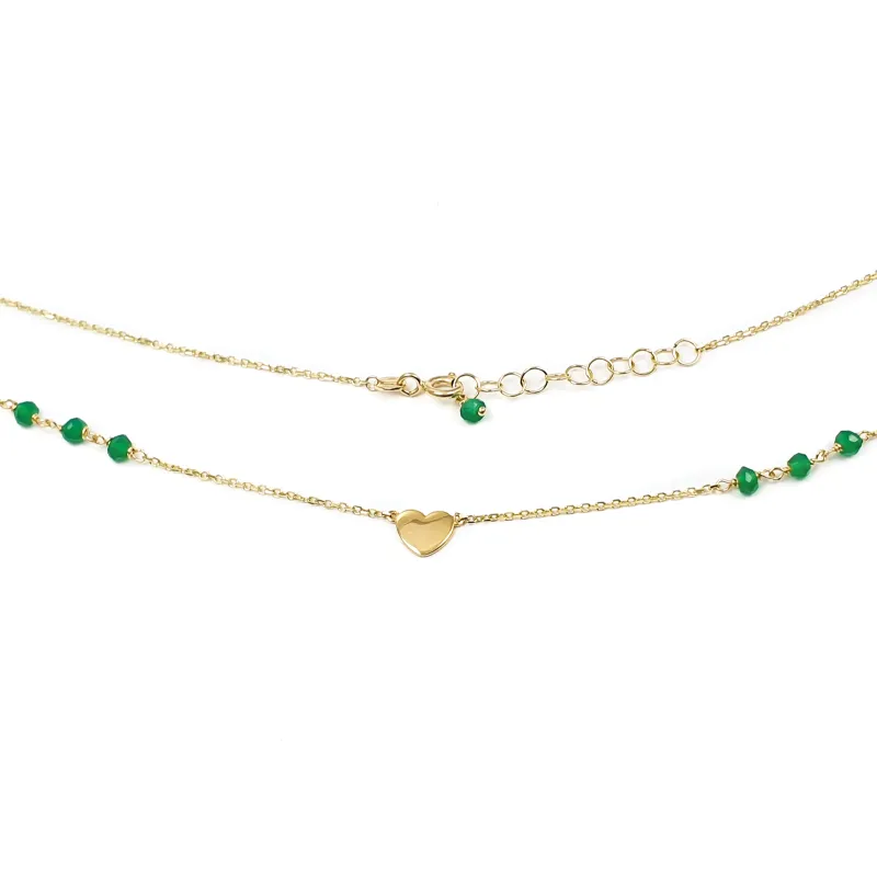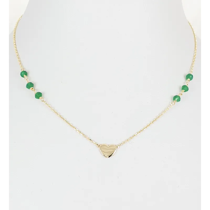 Złoty Naszyjnik 585 Serduszko Zielone Cyrkonie