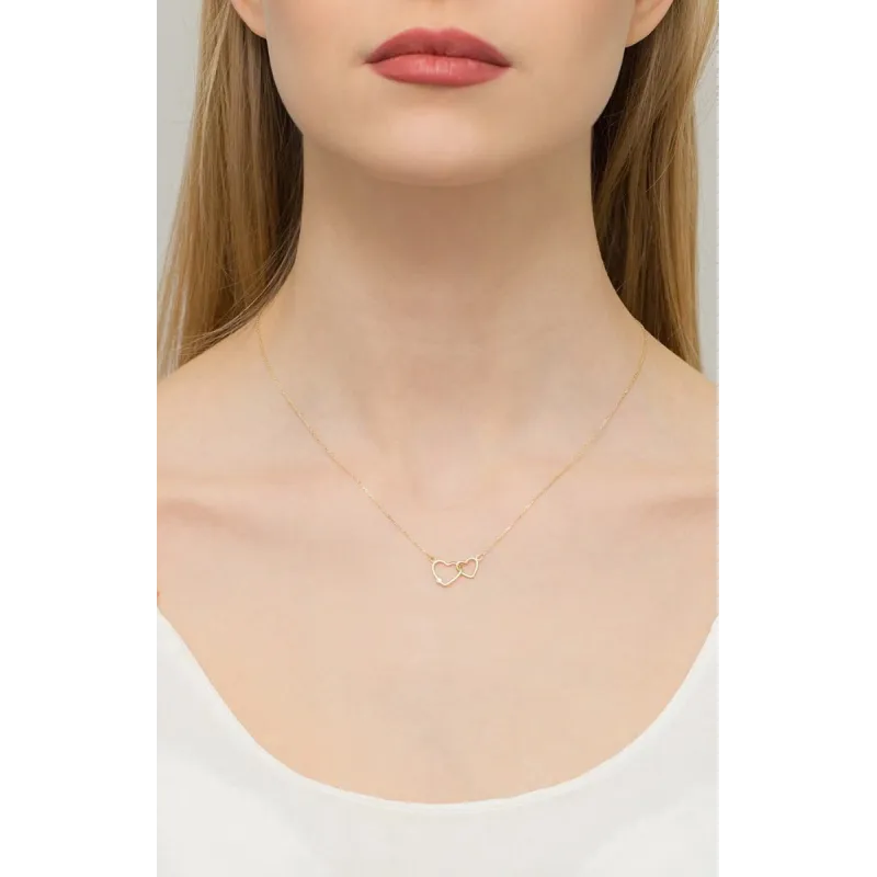 Złota 585 Celebrytka Dwa Serduszka z Brylantem