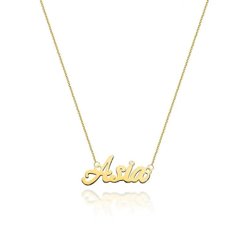 Złoty Naszyjnik 585 Celebrytka Imię Asia Brylant