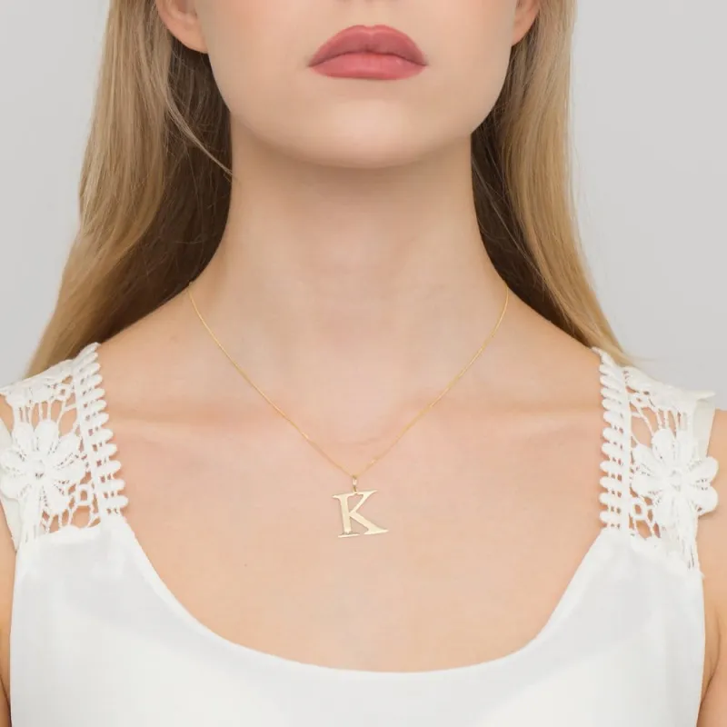 Złoty Łańcuszek z Dużą Literką K Brylant pr 585 ( na