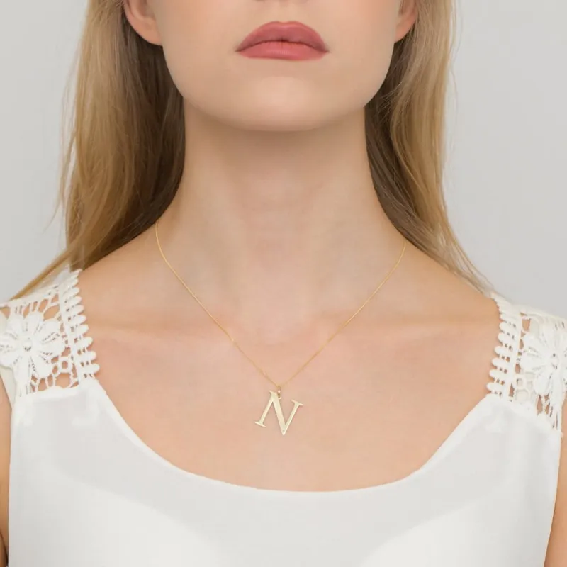Złoty 585 Łańcuszek z Dużą Literką N Brylant ( na