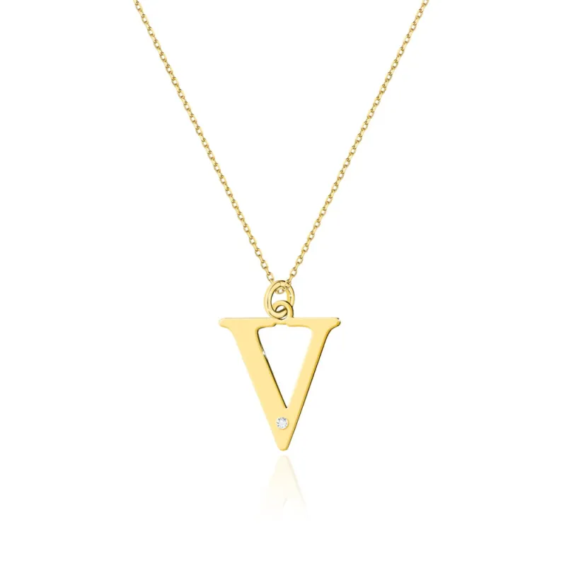 Złoty 585 Łańcuszek z Dużą Literką V Brylant ( na