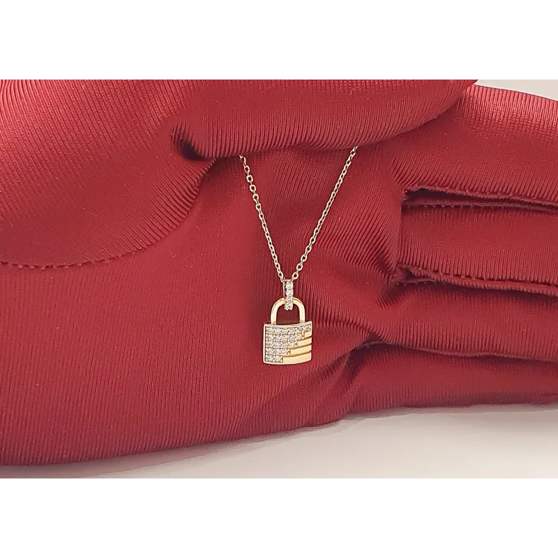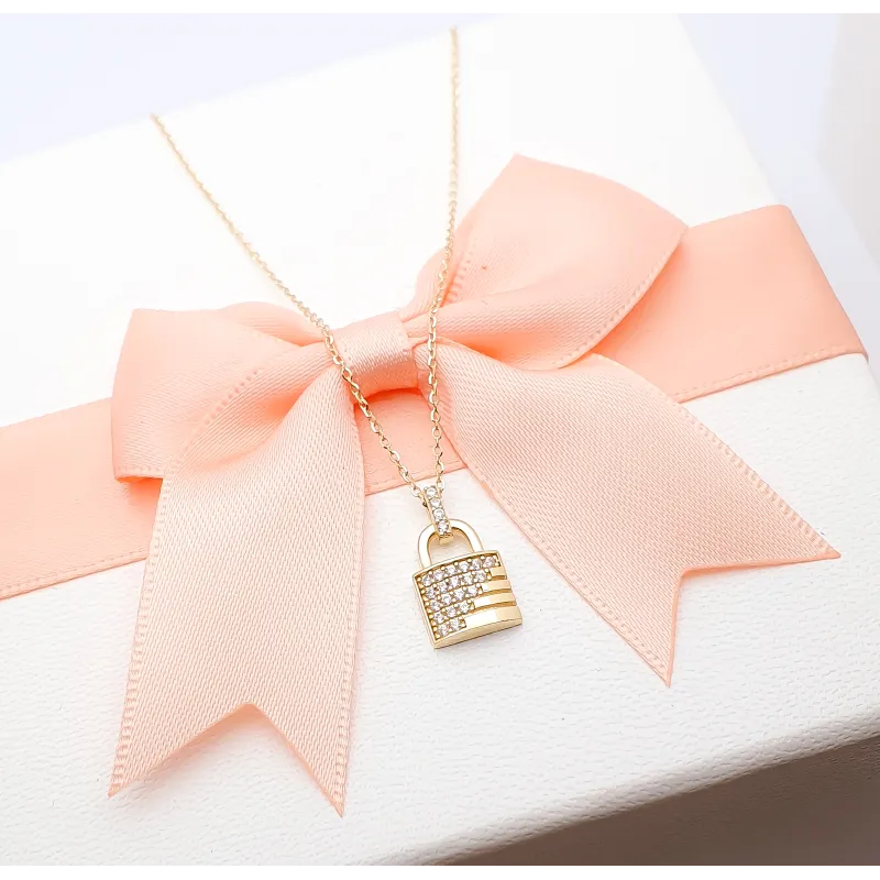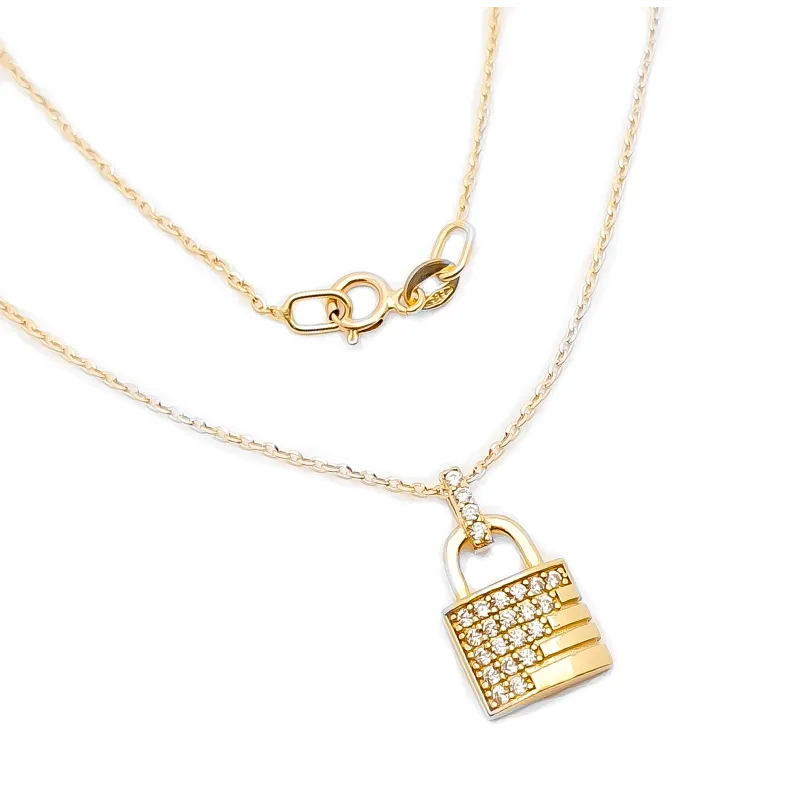 Złoty 585 Naszyjnik z Kłódką Cyrkonie na Prezent