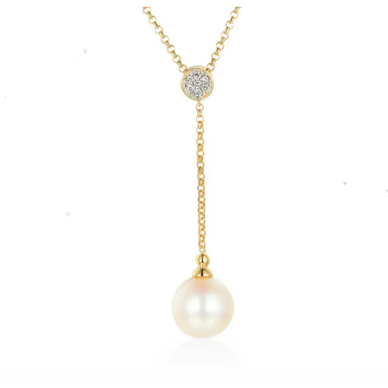 Naszyjnik Złoty 585 Perła i Kółko z Diamentami