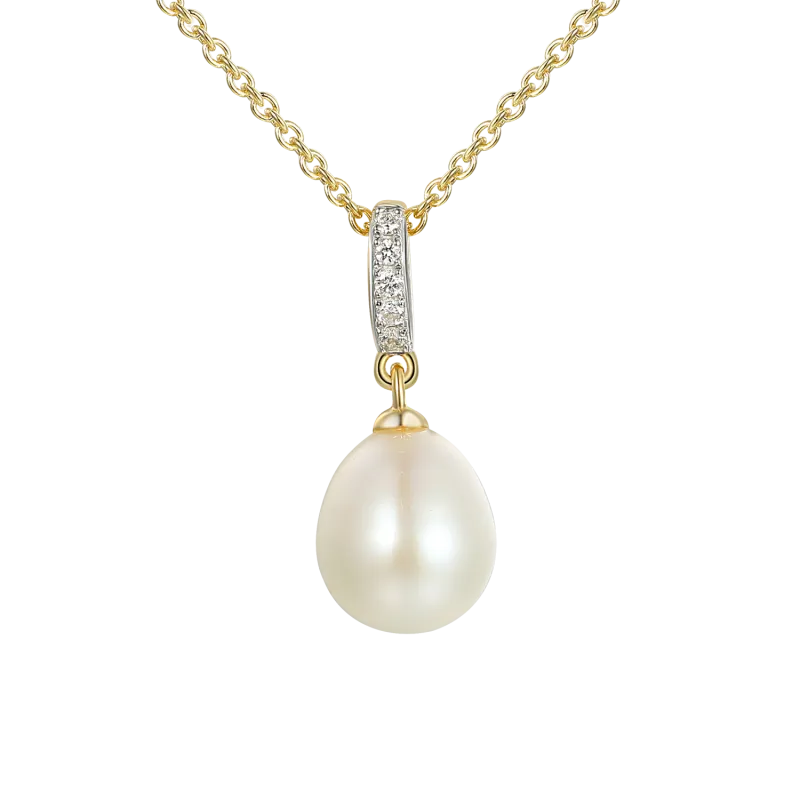 Naszyjnik Złoty Celebrytka z Perłą i Diamentami