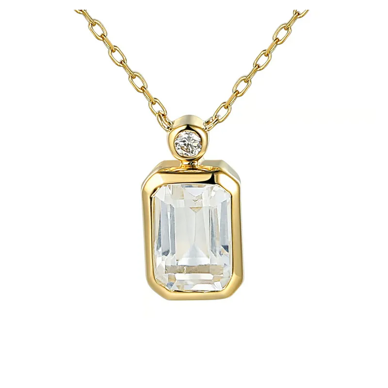 Złoty Naszyjnik 585 Celebrytka Biały Topaz Diament