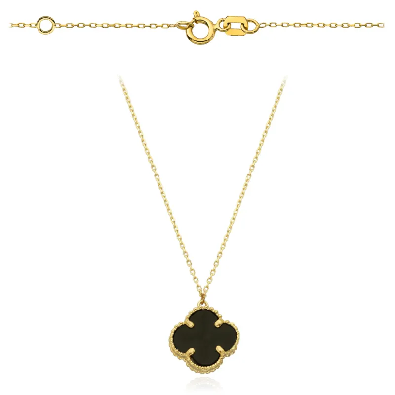 Złoty 585 Naszyjnik Koniczynka Duża z Onyksem na Prezent