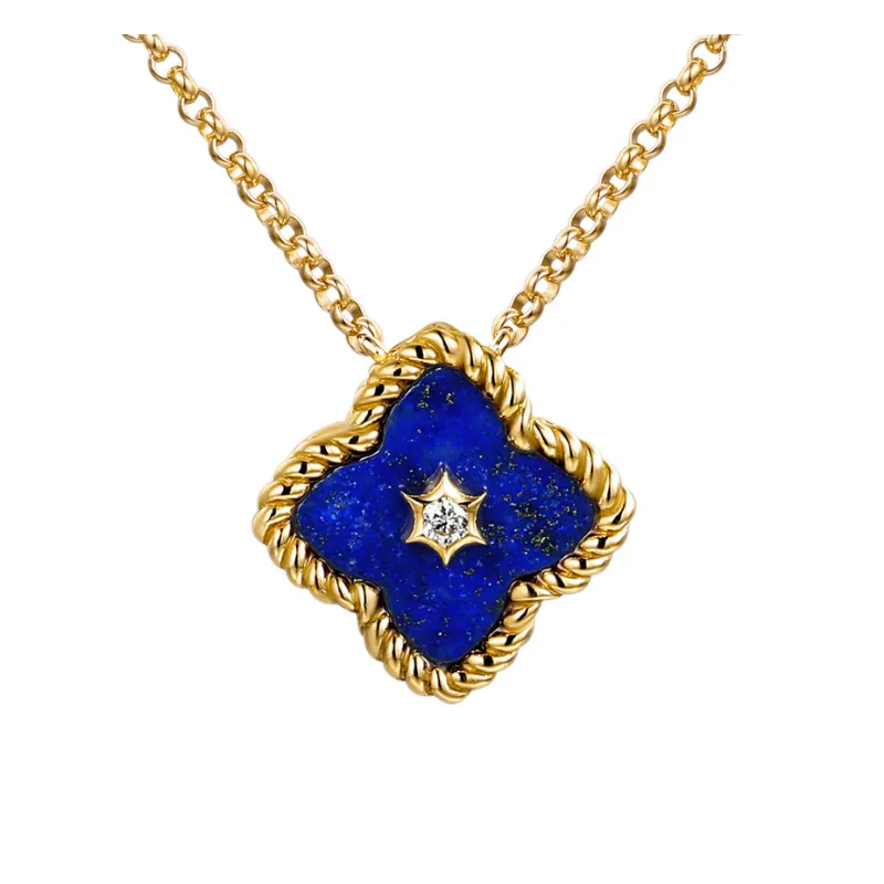 Złoty Naszyjnik 585 Lapis Lazuli i Diamenty Koniczynka