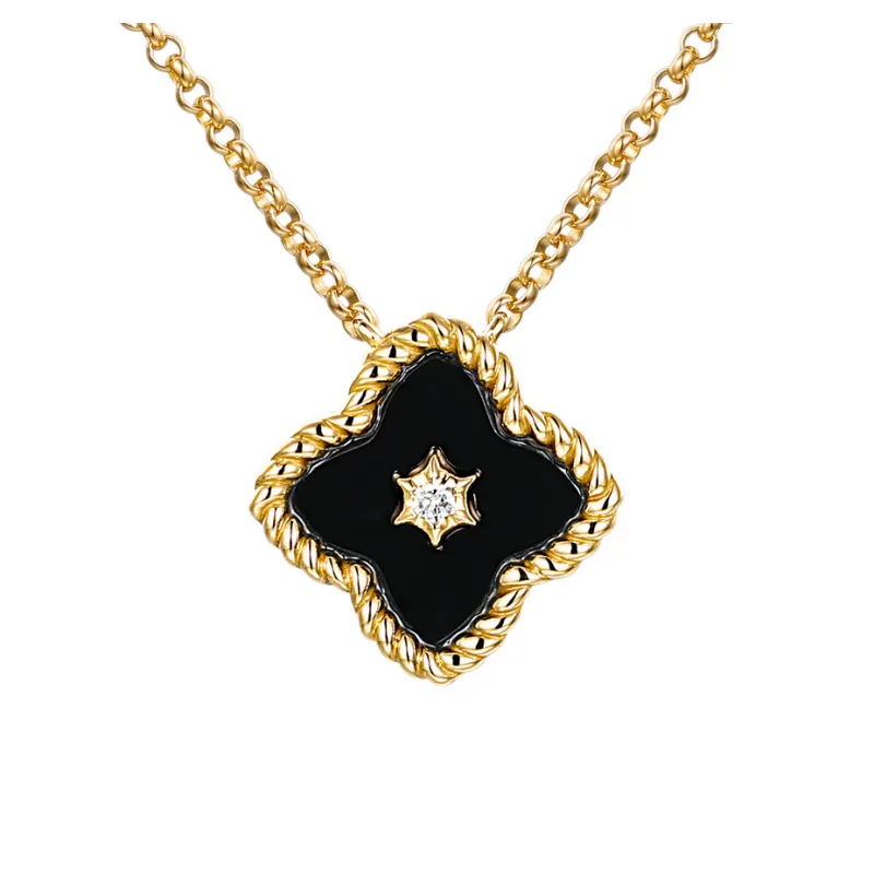 Złoty Naszyjnik 585 Agat i Diamenty Koniczynka