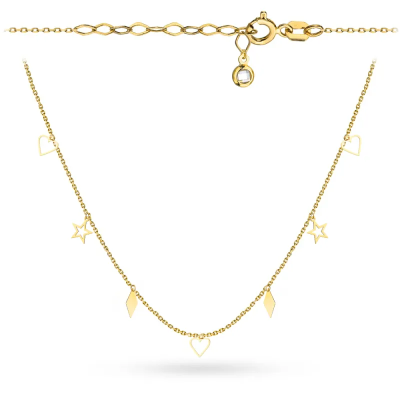 Złoty Naszyjnik 585 Serca Gwiazdki Romby