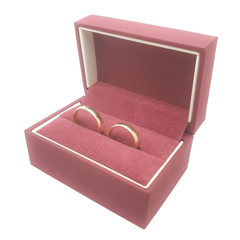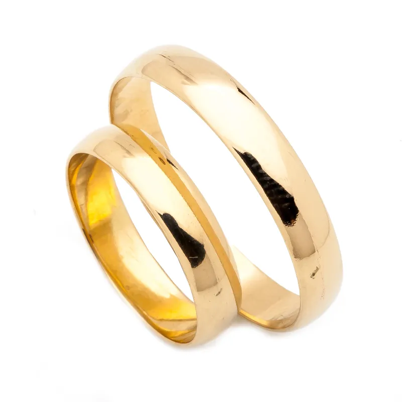 Klasyczne, złote obrączki do ślubu w próbie 585, w sam raz dla par szukających taniego rozwiązania do 2000 zł. Na specjalne życzenie klient mogą zostać wykonane z własnego złota, dopełnione dowolnym grawerunkiem stanowić będą wspaniały symbol małżeństwa.
